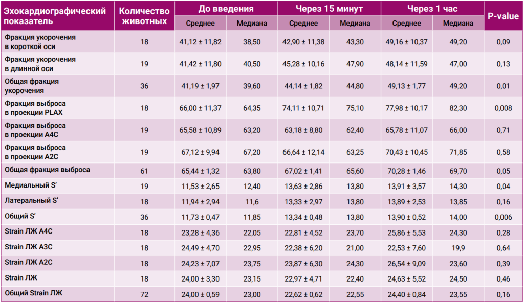 В работе приводятся результаты клинико-экспериментального исследования определения клинической эффективности препарата «Кормедан» (действующее вещество пимобендан). Препарат производится в инъекционной форме. Проспективное исследование проводилось на базе ветеринарной клиники СЛОЖНОГО СЛУЧАЯ (г. Санкт-Петербург). Общая выборка составила 19 клинически здоровых собак.Основным методом оценки эффективности препарата было эхокардиографическое исследование с акцентом на оценку систолической функции. Эхокардиография проводилась до введения препарата, а также через 15 минут и через 1 час после его введения. По результатам статистической обработки было выявлено статистически значимое увеличение систолической функции левого желудочка после внутривенного введения препарата «Кормедан» («ФармБаланс»).