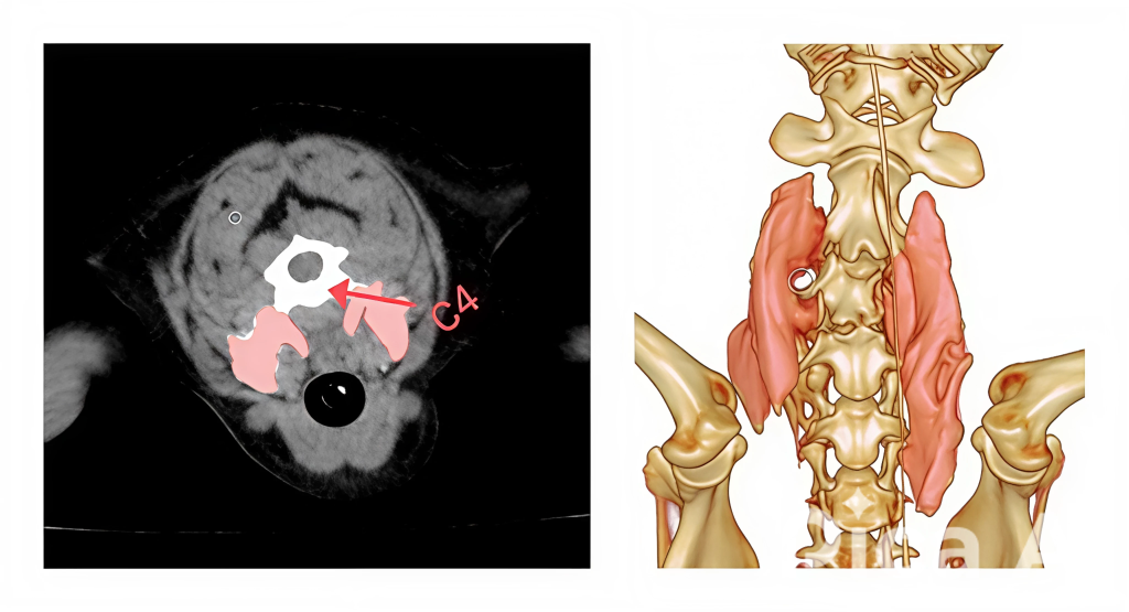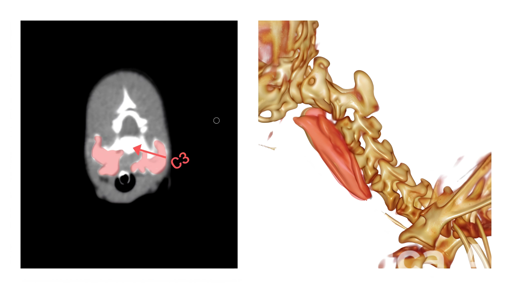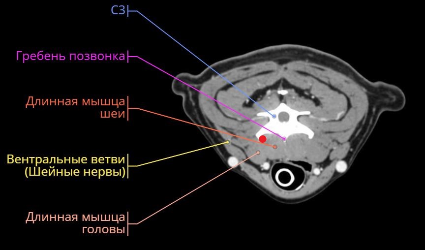 Развитие ветеринарной анестезиологии требует внедрения эффективных и безопасных методов обезболивания, особенно при сложных хирургических вмешательствах в области шеи. Фасциальные пространства шеи, образованные соединительнотканными оболочками, играют ключевую роль в распространении местных анестетиков при регионарной анестезии. Межфасциальные блокады (МФБ), выполняемые под ультразвуковым контролем, в этой области основаны на точном введении препаратов. Это позволяет достичь селективной анестезии целевых нервных структур с минимальным системным воздействием, что особенно важно у пациентов с сопутствующими патологиями.На базе клиники доктора Сотникова были проведены комплексные исследования, включающие компьютерную визуализацию и анатомическое изучение разработанных методик глубоких межфасциальных блокад. Эти методики успешно внедрены в клиническую практику проведения операций в области шеи. С помощью компьютерной томографии и специализированных ветеринарных анатомических атласов мы тщательно изучили топографию мышц, фасций, костей, сосудов и других анатомических структур, чтобы разработать оптимальный подход для введения анестетика.