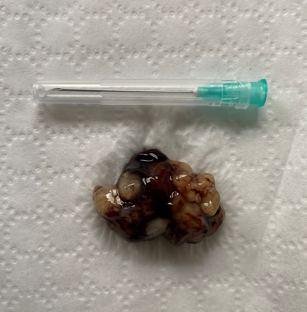 Образование было зафиксировано в 10%-ном забуференном формалине для проведения гистологического исследования (фото 10).
