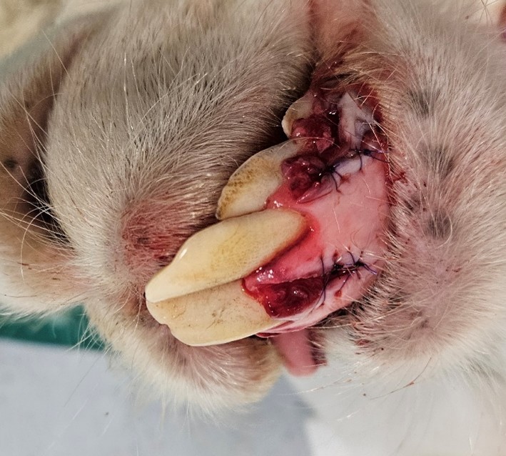 Заживление десны прошло без особенностей, и альпака полностью восстановилась в течение 14 дней после оперативного вмешательства.
