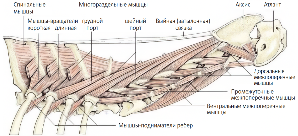 Мышцы шеи у собак представляют собой сложную систему, обеспечивающую не только движение, но и стабилизацию шейного отдела позвоночника.По топографии и функции их можно разделить на три основные группы: